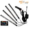 Музыкальный автомобильный сенсор, состоит из процессора RGB к которому подключены 4 отрезка RGB лент. Каждая полоска представляет собой отдельный канал «цветомузыки». В комплект входит ИК пульт дистанционного управления, оснащенный 20 клавишами для настройки.